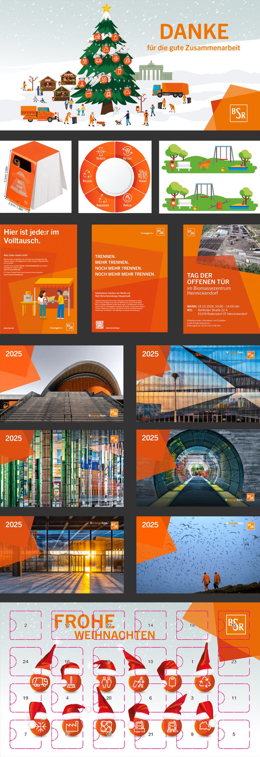 Entwicklung von Illustrationen, Icons, Anzeigen, Kalender und Animationen im Corporate Design der BSR.